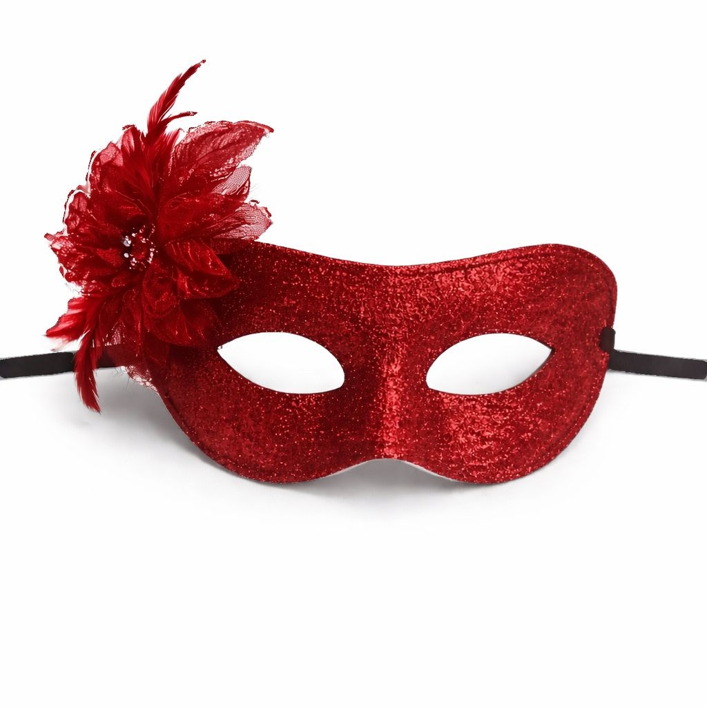 Kırmızı Simli Tüylü Balo Maskesi