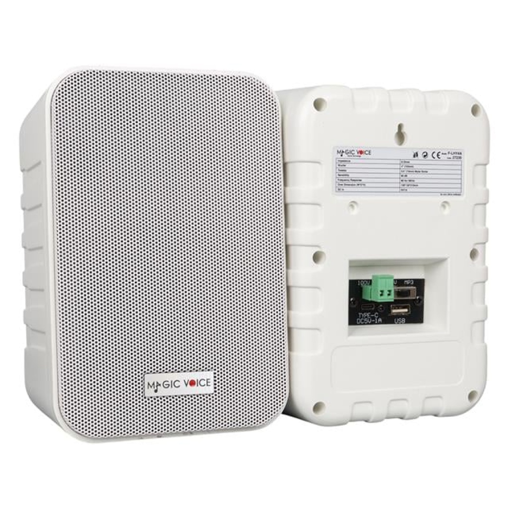 MagicVoice F-LHY4A (27234), hat trafolu (100V) ses sistemleri için tasarlanmış kompakt, 4 inçlik bir duvar tipi hoparlör setidir. Paket, çift olarak (2 adet) gelmektedir. 10W RMS (150W Peak) gücünde çalışan bu hoparlörler, sadece geleneksel 100V hat amfilerine bağlanmakla kalmaz, aynı zamanda benzersiz bir dahili MP3 çalara ve USB portuna sahiptir. Bu sayede, harici bir amfiye ihtiyaç duymadan USB belleğinizdeki MP3 dosyalarını çalabilir. MP3/USB oynatıcıyı çalıştırmak için ise arkasında bulunan Type-C (DC 5V/1A) portu üzerinden harici güç ile beslenir. Bu çok yönlü özellik, küçük mekanlarda tek başına müzik kaynağı olarak kullanılabilmesini sağlar.