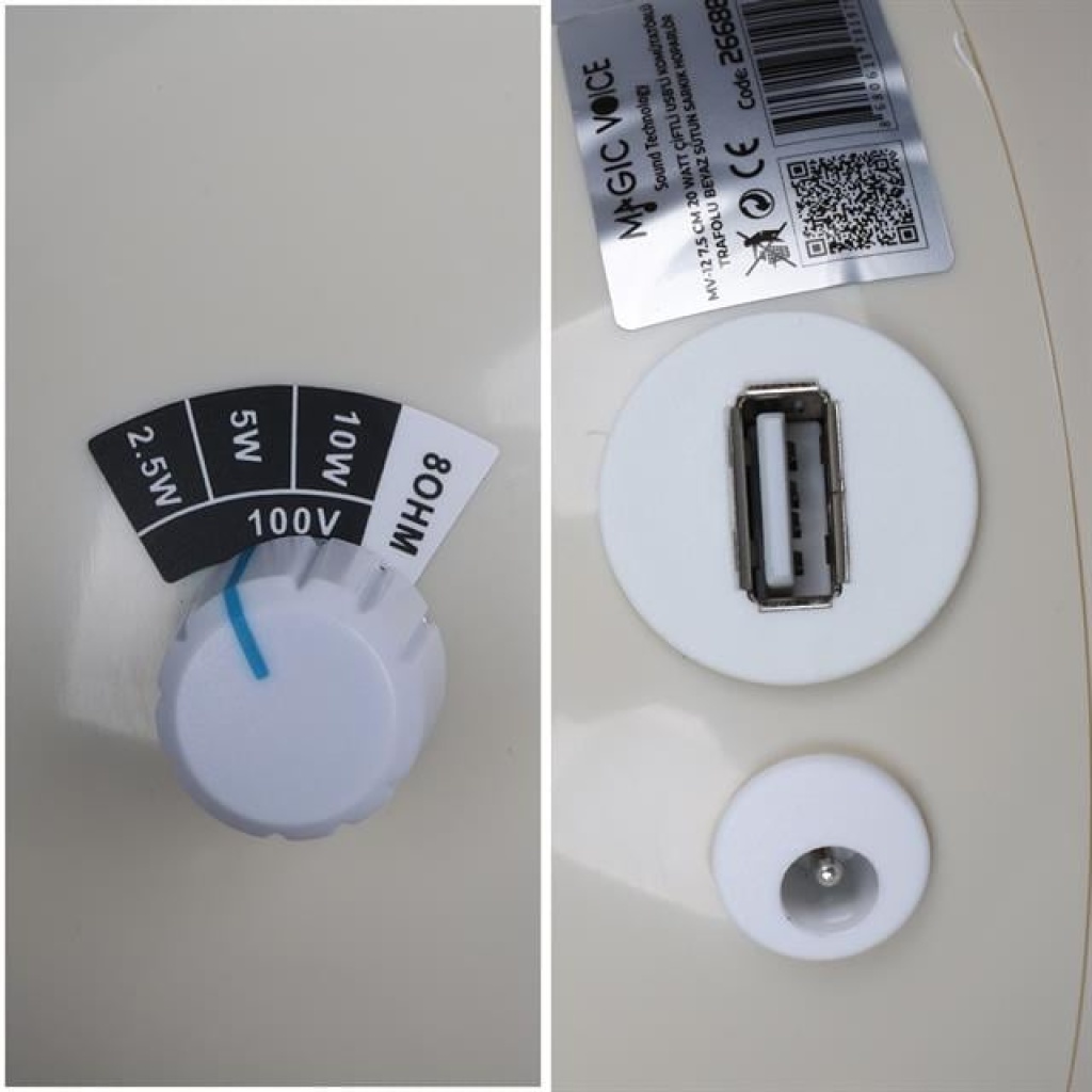 Öne Çıkan Avantaj: MagicVoice MV-12 seti, dört kademeli komütatör seçeneği sayesinde farklı mekan ihtiyaçlarına mükemmel uyum sağlar. Küresel tasarımı ve 140° hareket açısı ile geniş bir alana etkili ses yayılımı sunar. Kompakt boyutları sayesinde küçük alanlarda bile mükemmel bir çözüm sunar. 12V güç girişi ve USB şarj çıkışı ile acil durumlarda telefon şarj imkanı sunarak çift fonksiyonlu kullanım avantajı sağlar. Dekoratif tasarımı ile mekan estetiğini bozmadan profesyonel ses kalitesi sunar.