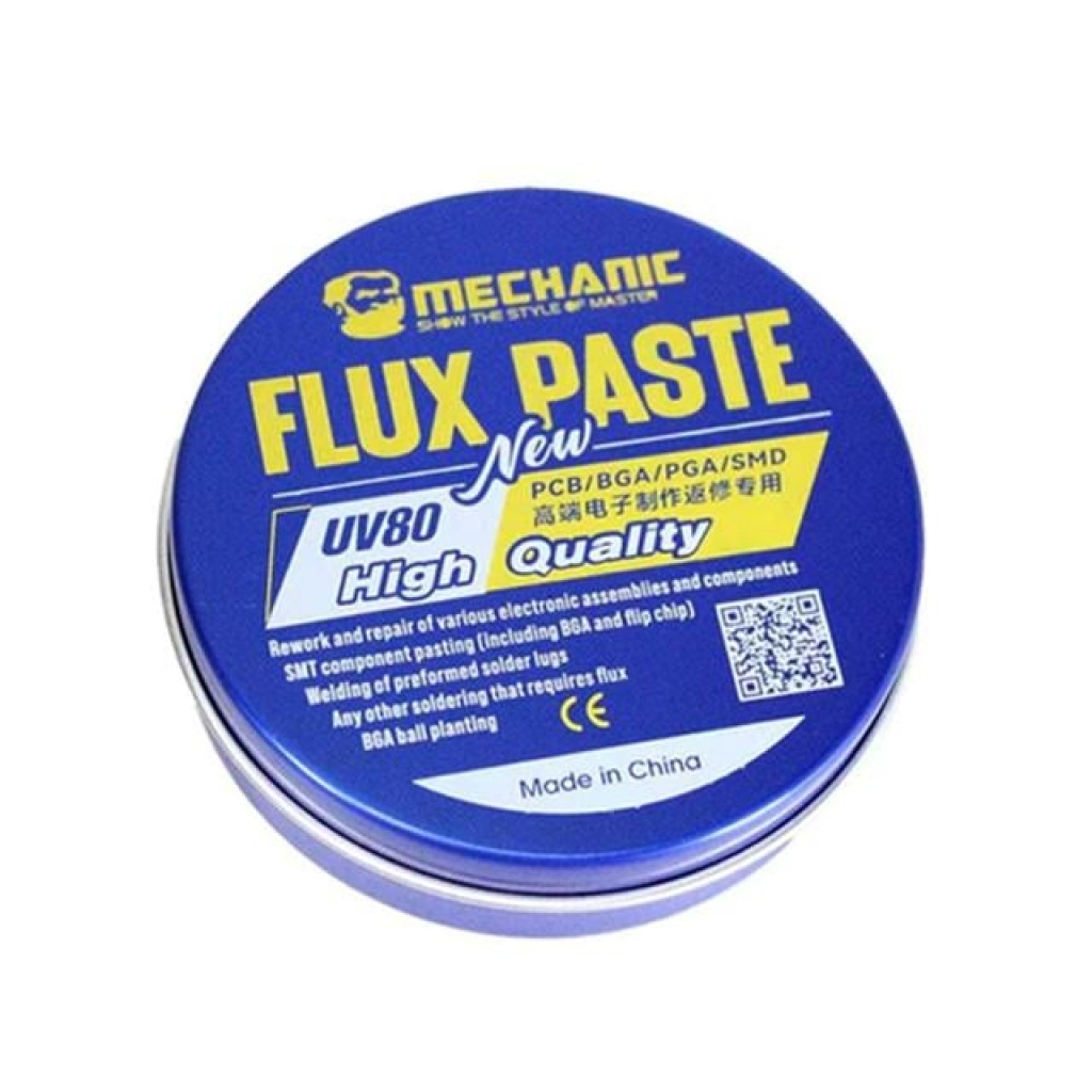 PowerMaster UV80, elektronik devre kartları ve mobil telefon tamirleri için özel olarak geliştirilmiş yüksek kaliteli bir lehim flux pastasıdır. Tereyağı kıvamında, yüksek yapışma gücüne sahip, nötr PH değerli ve güçlü yalıtım özellikleri ile hassas elektronik çip seviyesi lehimleme işlemleri için idealdir. Yüksek saflıkta çam ağacı reçinesi içerir ve yüksek sıcaklıkta eriyerek katılaşır.