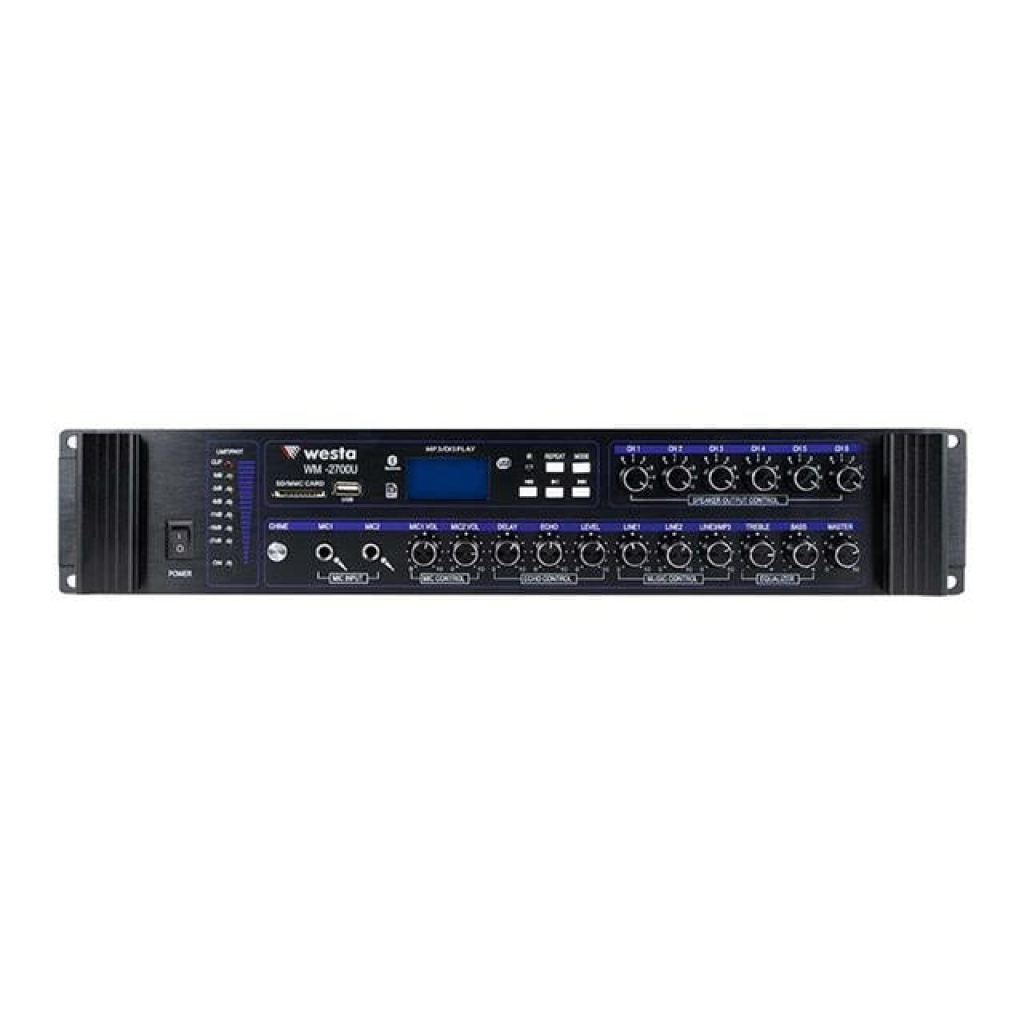 Westa WM-2700U 700W USB/BT/SD 6 Bölgeli Hat Trafolu Mikser Amfi, ses sistemleri dünyasında güçlü ve çok yönlü bir çözüm sunar. Bu amfi, etkileyici 700W çıkış gücü ile her türlü ses ihtiyacınıza karşılık verir. İşte bu ürünle ilgili önemli özellikler ve detaylar: